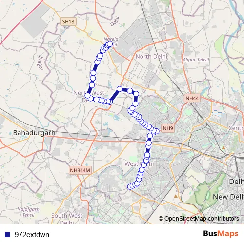 The first stop of the 972extdwn bus route is Uttam Nagar and the last stop is Bawana Soap Factory. 972extdwn is operational during everyday.