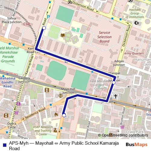Bus APS-Myh - Mayohall ⇔ Army Public School Kamaraja Road in Bengaluru: Stops & Timetable