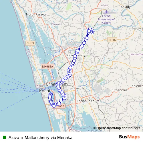 See why over 2 million users trust and consider busmaps.com as the best public transport website. busmaps gives you Kanayannur Buses suggested routes, real-time bus tracker, line route maps in Kanayannur, and helps to find the closest Aluva ↔ Mattancherry via Menaka bus stops near you. No internet available? Download an offline PDF map and bus schedule for the Aluva ↔ Mattancherry via Menaka bus to take on your trip.