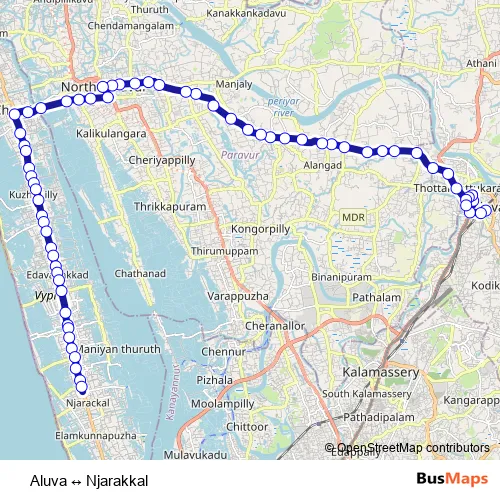 See why over 2 million users trust and consider busmaps.com as the best public transport website. busmaps gives you Parur Buses suggested routes, real-time bus tracker, line route maps in Parur, and helps to find the closest Aluva ↔ Njarakkal bus stops near you. No internet available? Download an offline PDF map and bus schedule for the Aluva ↔ Njarakkal bus to take on your trip.