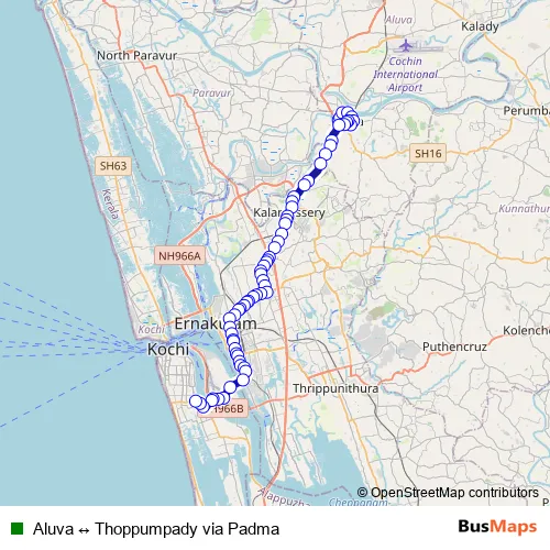 Additional information: Aluva ↔ Thoppumpady via Padma has 65 stops and the total trip duration