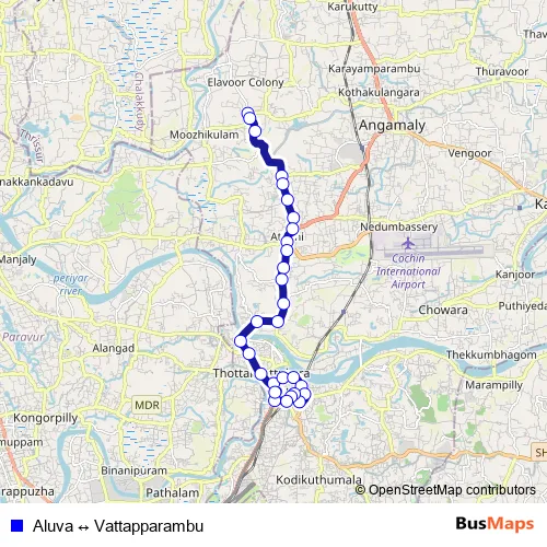See why over 2 million users trust and consider busmaps.com as the best public transport website. busmaps gives you Chengamanad Buses suggested routes, real-time bus tracker, line route maps in Chengamanad, and helps to find the closest Aluva ↔ Vattapparambu bus stops near you. No internet available? Download an offline PDF map and bus schedule for the Aluva ↔ Vattapparambu bus to take on your trip.