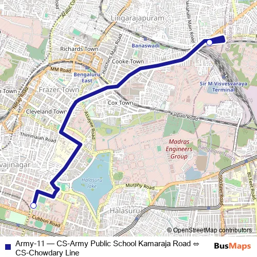 Bus Army-11 - CS-Army Public School Kamaraja Road ⇔ CS-Chowdary Line: Full Schedule in Bengaluru