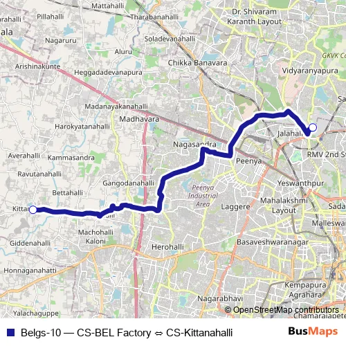 The first stop of the Belgs-10 bus route is CS-Kittanahalli and the last stop is CS-BEL Factory. Belgs-10 (CS-BEL Factory ⇔ CS-Kittanahalli) is operational during everyday.