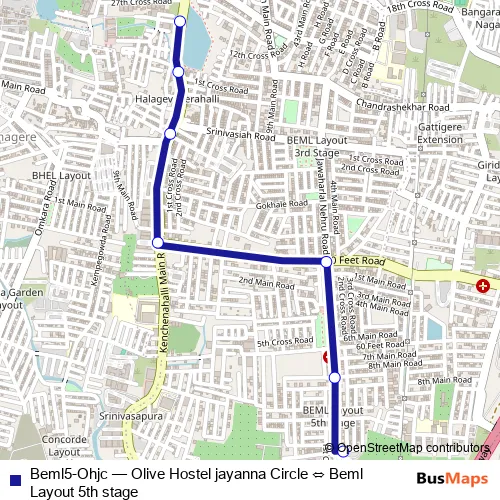 Bus Beml5-Ohjc - Olive Hostel jayanna Circle ⇔ Beml Layout 5th stage: Full Schedule in Bengaluru