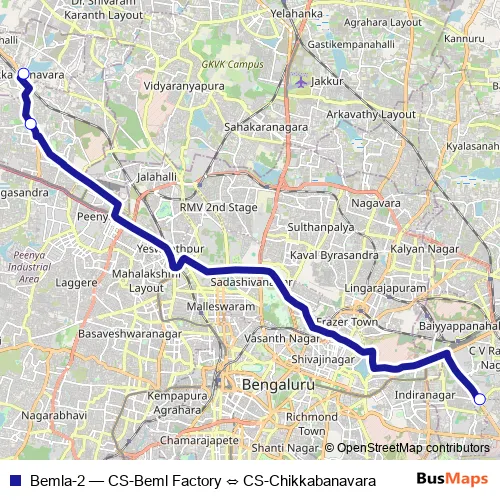 Bus Bemla-2 - CS-Beml Factory ⇔ CS-Chikkabanavara in Bengaluru: Stops & Timetable