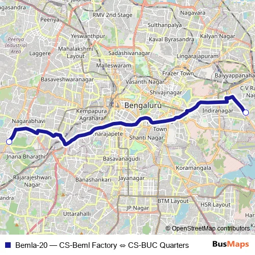 See why over 2 million users trust and consider busmaps.com as the best public transport website. busmaps gives you Bengaluru Buses suggested routes, real-time bus tracker, line route maps in Bengaluru, and helps to find the closest Bemla-20 bus stops near you. No internet available? Download an offline PDF map and bus schedule for the Bemla-20 bus to take on your trip.