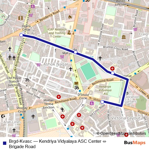 Click here to view the nearest Brgd-Kvasc - Kendriya Vidyalaya ASC Center ⇔ Brigade Road bus stop.