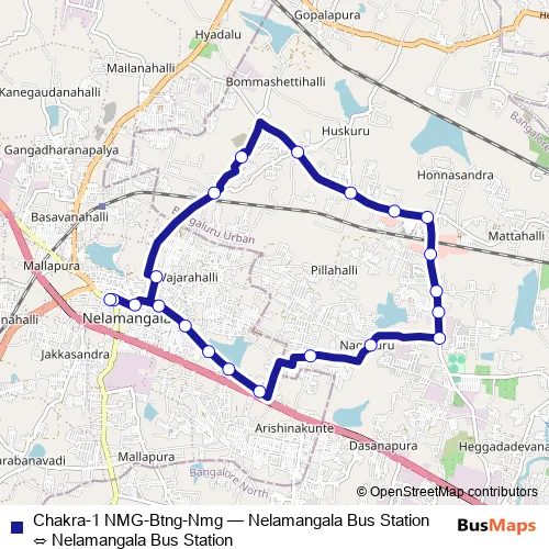 Nelamangala Bus Station. Chakra-1 NMG-Btng-Nmg (Nelamangala Bus Station ⇔ Nelamangala Bus Station) is operational during everyday.