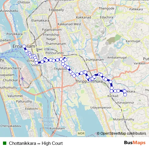 Additional information: Chottanikkara ↔ High Court has 48 stops and the total trip duration for this route is approximately 56 minutes.