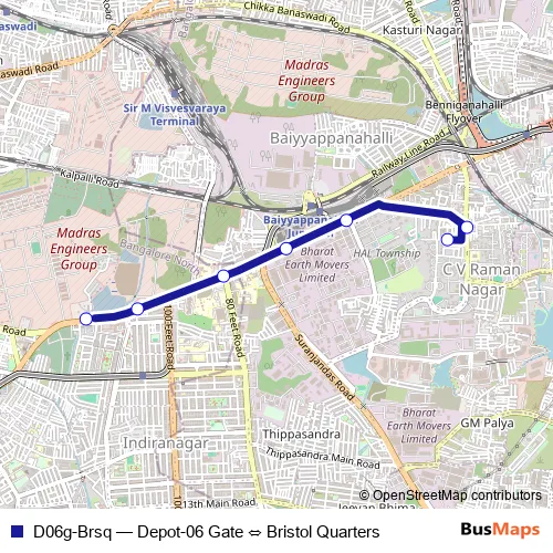 Bus D06g-Brsq - Depot-06 Gate ⇔ Bristol Quarters in Bengaluru: Stops & Timetable