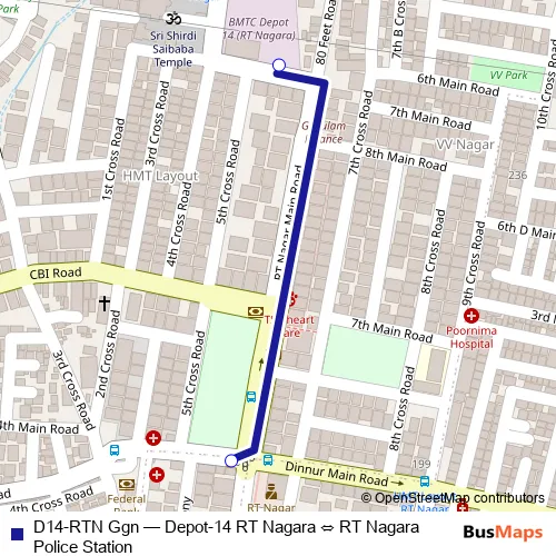 Click here to view the nearest D14-RTN Ggn - Depot-14 RT Nagara ⇔ RT Nagara Police Station bus stop.