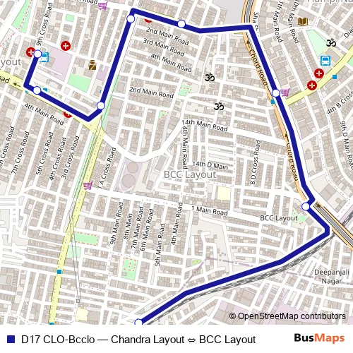 Bus D17 CLO-Bcclo - Chandra Layout ⇔ BCC Layout in Bengaluru: Stops & Timetable