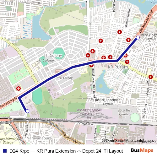 Click here to view the nearest D24-Krpe - KR Pura Extension ⇔ Depot-24 ITI Layout bus stop.