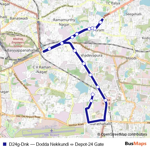 Click here to view the nearest D24g-Dnk - Dodda Nekkundi ⇔ Depot-24 Gate bus stop.