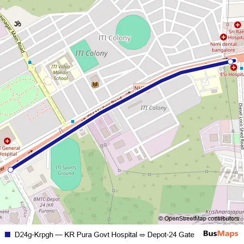 Click here to view the nearest D24g-Krpgh - KR Pura Govt Hospital ⇔ Depot-24 Gate bus stop.