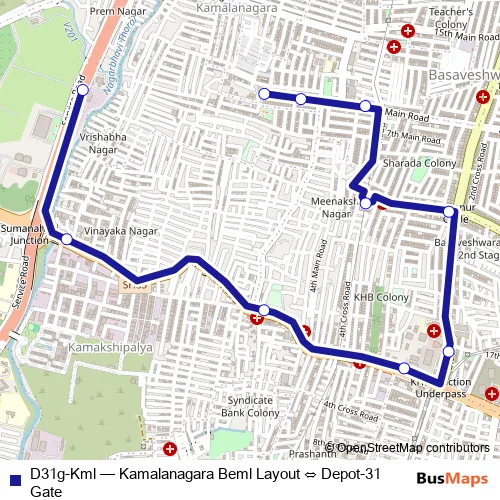 See why over 2 million users trust and consider busmaps.com as the best public transport website. busmaps gives you Bengaluru Buses suggested routes, real-time bus tracker, line route maps in Bengaluru, and helps to find the closest D31g-Kml bus stops near you. No internet available? Download an offline PDF map and bus schedule for the D31g-Kml bus to take on your trip.