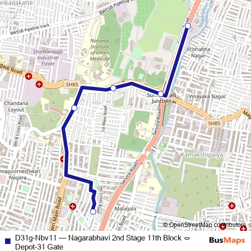 Nagarabhavi 2nd Stage 11th Block. D31g-Nbv11 (Nagarabhavi 2nd Stage 11th Block ⇔ Depot-31 Gate) is operational during everyday.