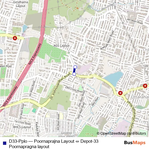 Bus D33-Pplo - Poornaprajna Layout ⇔ Depot-33 Poornapragna layout in Bengaluru: Stops & Timetable
