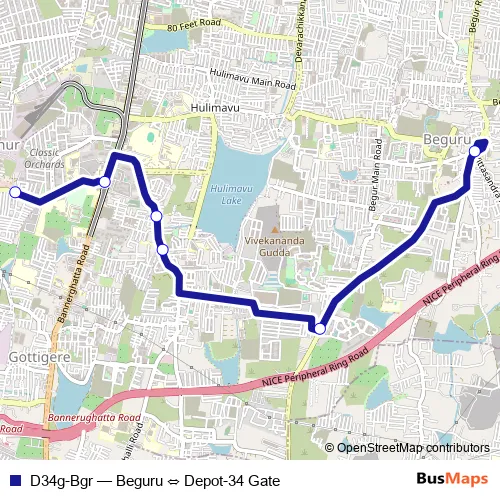 Bus D34g-Bgr - Beguru ⇔ Depot-34 Gate in Bengaluru: Stops & Timetable