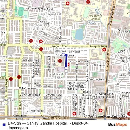 Bus D4-Sgh - Sanjay Gandhi Hospital ⇔ Depot-04 Jayanagara: Full Schedule in Bengaluru