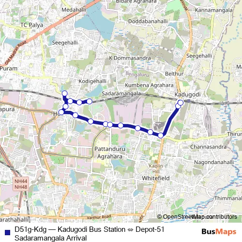 Depot-51 Sadaramangala Departure ➞ Kadugodi Bus Station