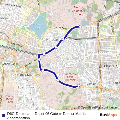 Bus D6G-Dmlmda - Depot-06 Gate ⇔ Domlur Marriad Accomodation: Full Schedule in Bengaluru