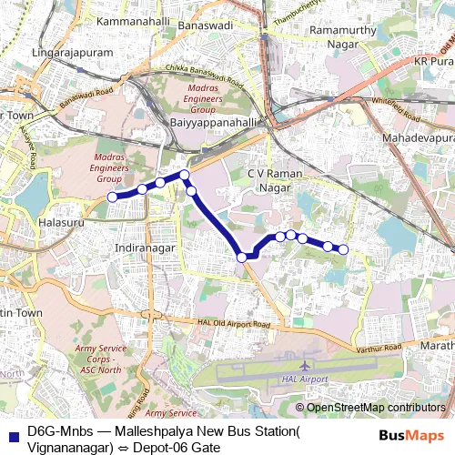 Click here to view the nearest D6G-Mnbs - Malleshpalya New Bus Station(Vignananagar) ⇔ Depot-06 Gate bus stop.