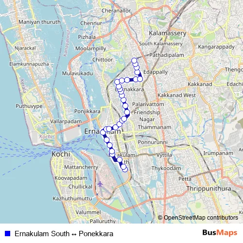 Mofussil Kochi bus Ernakulam South ↔ Ponekkara bus Route Map