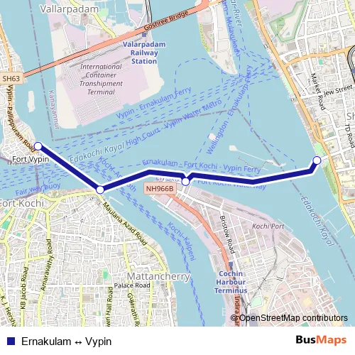 Vypin. Ernakulam ↔ Vypin (Ernakulam ↔ Vypin) is operational during everyday.