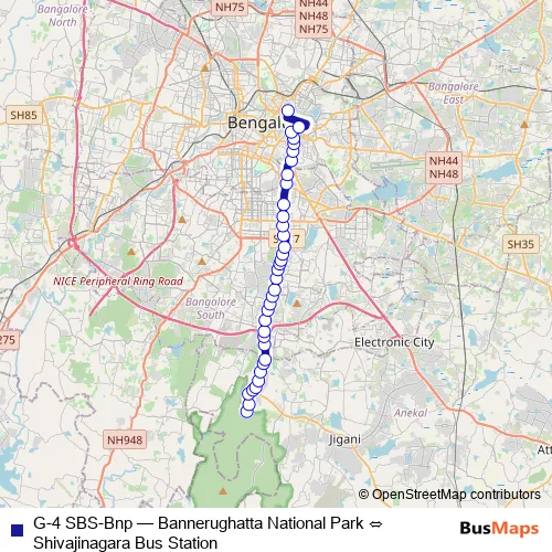 Bus G-4 SBS-Bnp - Bannerughatta National Park ⇔ Shivajinagara Bus Station in Bengaluru: Stops & Timetable