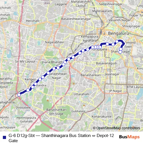 Bus G-6 D12g-Sbt - Shanthinagara Bus Station ⇔ Depot-12 Gate: Full Schedule in Bengaluru