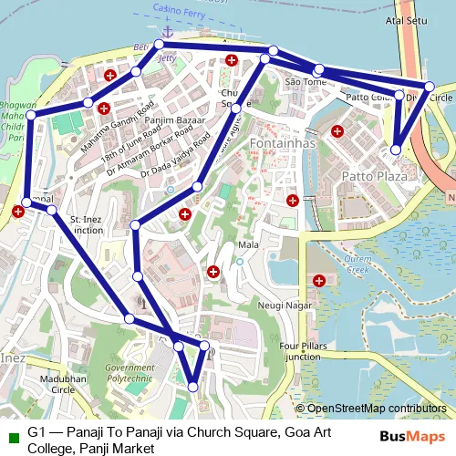 G1 (Panaji To Panaji via Church Square, Goa Art College, Panji Market) Bus in Panjim