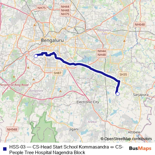 Bus HSS-03 - CS-Head Start School Kommasandra ⇔ CS-People Tree Hospital Nagendra Block in Bengaluru: Stops & Timetable