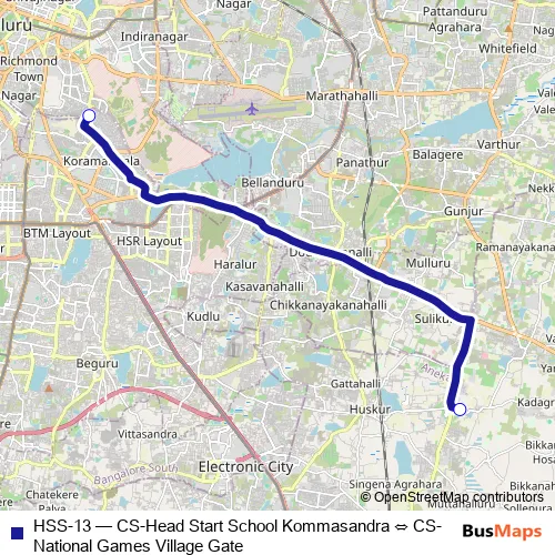 See why over 2 million users trust and consider busmaps.com as the best public transport website. busmaps gives you Bengaluru Buses suggested routes, real-time bus tracker, line route maps in Bengaluru, and helps to find the closest HSS-13 bus stops near you. No internet available? Download an offline PDF map and bus schedule for the HSS-13 bus to take on your trip.