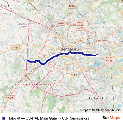 See why over 2 million users trust and consider busmaps.com as the best public transport website. busmaps gives you Bengaluru Buses suggested routes, real-time bus tracker, line route maps in Bengaluru, and helps to find the closest Halpv-9 bus stops near you. No internet available? Download an offline PDF map and bus schedule for the Halpv-9 bus to take on your trip.