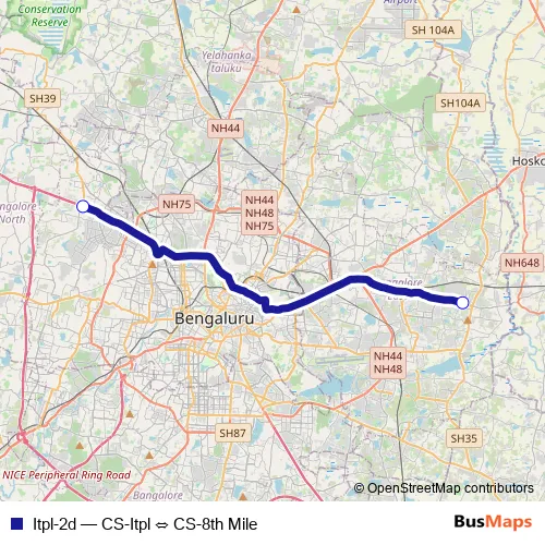See why over 2 million users trust and consider busmaps.com as the best public transport website. busmaps gives you Bengaluru Buses suggested routes, real-time bus tracker, line route maps in Bengaluru, and helps to find the closest Itpl-2d bus stops near you. No internet available? Download an offline PDF map and bus schedule for the Itpl-2d bus to take on your trip.
