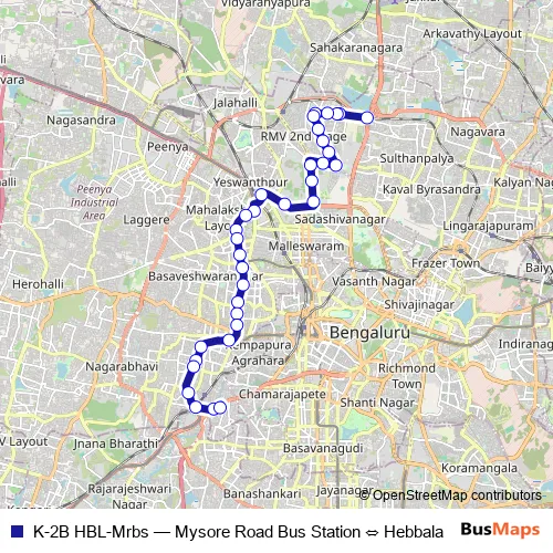 Bmtc K-2B HBL-Mrbs Mysore Road Bus Station ⇔ Hebbala Bus