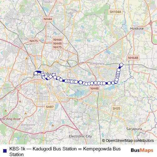 Bus KBS-1k - Kadugodi Bus Station ⇔ Kempegowda Bus Station in Bengaluru: Stops & Timetable