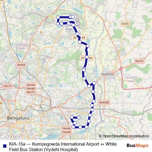 Bus KIA-15a - Kempegowda International Airport ⇔ White Field Bus Station (Vydehi Hospital): Full Schedule in Bengaluru