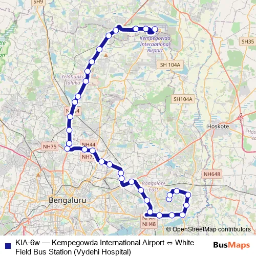 Bus KIA-6w - Kempegowda International Airport ⇔ White Field Bus Station (Vydehi Hospital) in Bengaluru: Stops & Timetable
