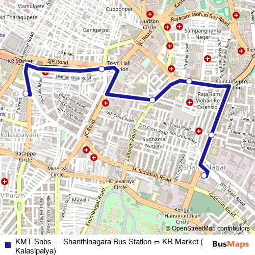 Click here to view the nearest KMT-Snbs - Shanthinagara Bus Station ⇔ KR Market (Kalasipalya) bus stop.