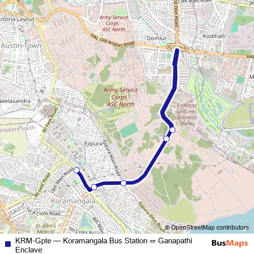 Bus KRM-Gpte - Koramangala Bus Station ⇔ Ganapathi Enclave Schedule in Bengaluru