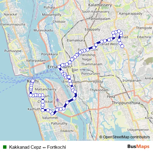 Fort Kochi Stand. Kakkanad Cepz ↔ Fortkochi (Kakkanad Cepz ↔ Fortkochi) is operational during everyday.