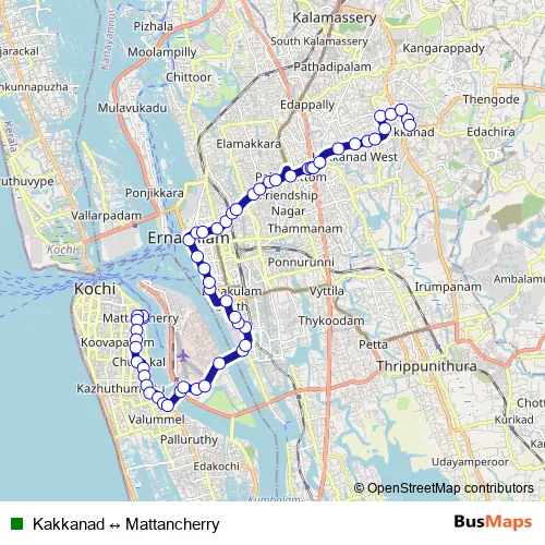 Additional information: Kakkanad ↔ Mattancherry has 56 stops and the total trip duration