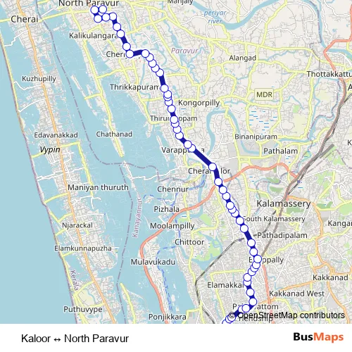 Additional information: Kaloor ↔ North Paravur has 49 stops and the total trip duration