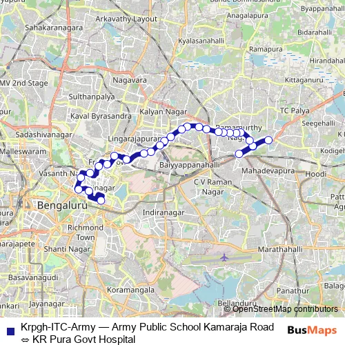 Army Public School Kamaraja Road. Krpgh-ITC-Army (Army Public School Kamaraja Road ⇔ KR Pura Govt Hospital) is operational during everyday.