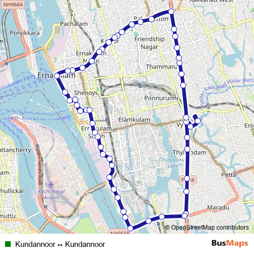 Kochi city bus Kundannoor ↔ Kundannoor bus Route Map