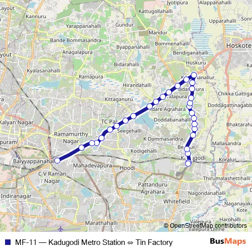 Bus MF-11 - Kadugodi Metro Station ⇔ Tin Factory in Bengaluru: Stops & Timetable