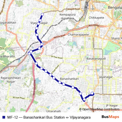 Bus MF-12 - Banashankari Bus Station ⇔ Vijayanagara: Full Schedule in Bengaluru